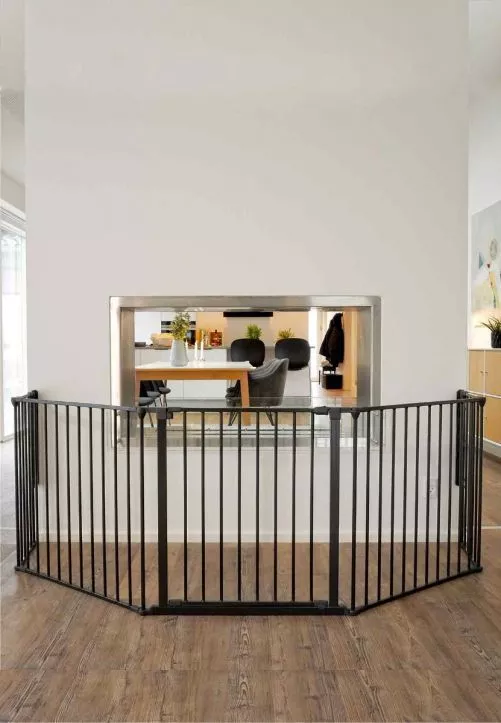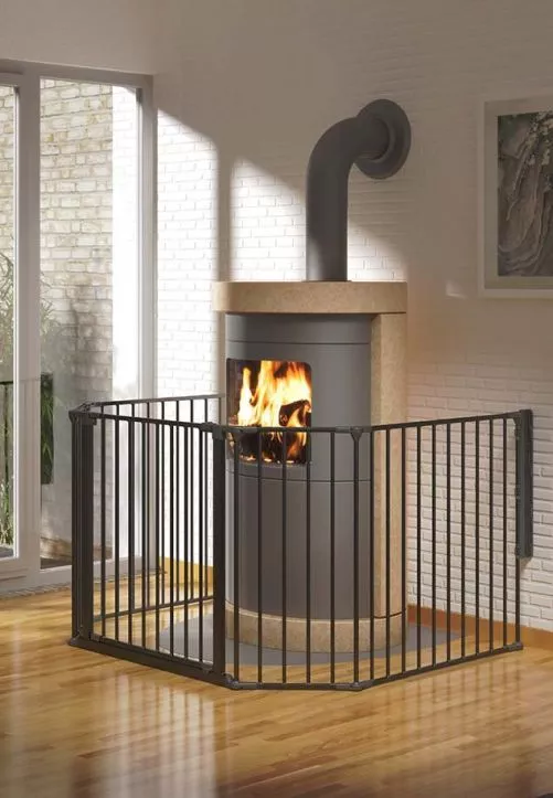 Kratka ochronna DOLLE Ben składa się z kilku łatwych do łączenia elementów. Można je bezpiecznie przymocować do ściany i indywidualnie przedłużać. Z Benem możesz zabezpieczyć piece, kominy lub zbudować wolnostojący kojec.
