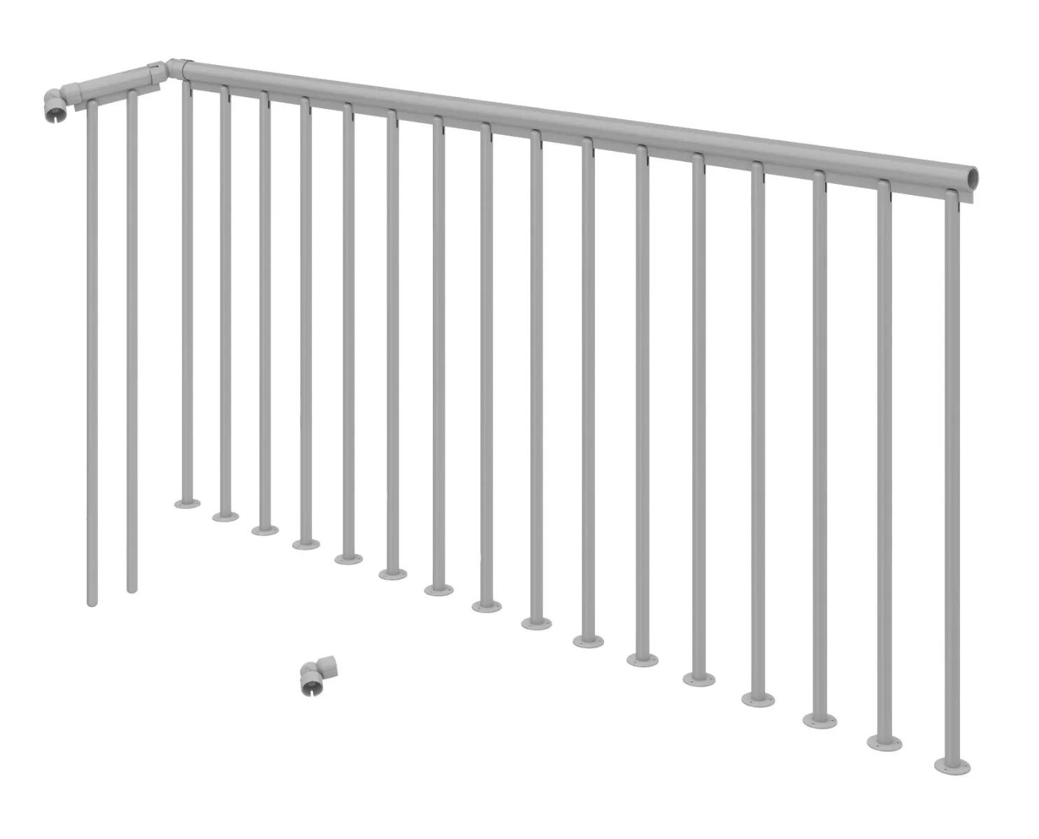 Barierka ochronna CLASSIC została zaprojektowana do schodów spiralnych CALGARY oraz MONTREAL CLASSIC. Zestaw składa się z poręczy PCV Ø 40 mm o długości 2m oraz wypełnienia w postaci pionowych tralek. Wszystkie elementy montażowe oraz złączka kątowa do poręczy zawarte są w zestawie. Złączka kątowa pozwala na połączenie 2 odcinków poręczy pod kątem 90°-180°. Wysokość barierki to 100 cm. Barierka dostępna jest w kolorze białym (RAL 9016), antracytowym (RAL 7016) i srebrnym (RAL 9006).