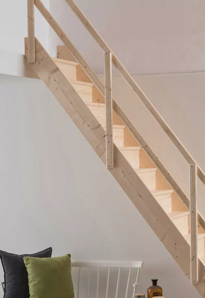 Schody DOLLE Normandie posiadają solidną konstrukcję ze stopniami wpuszczanymi w policzki. Są dostępne w wersji prostej i z zabiegiem 1/4.