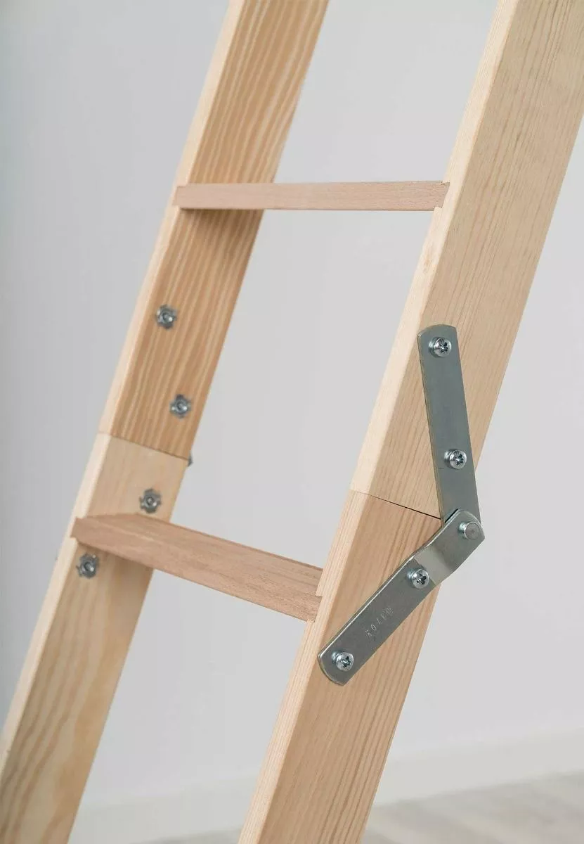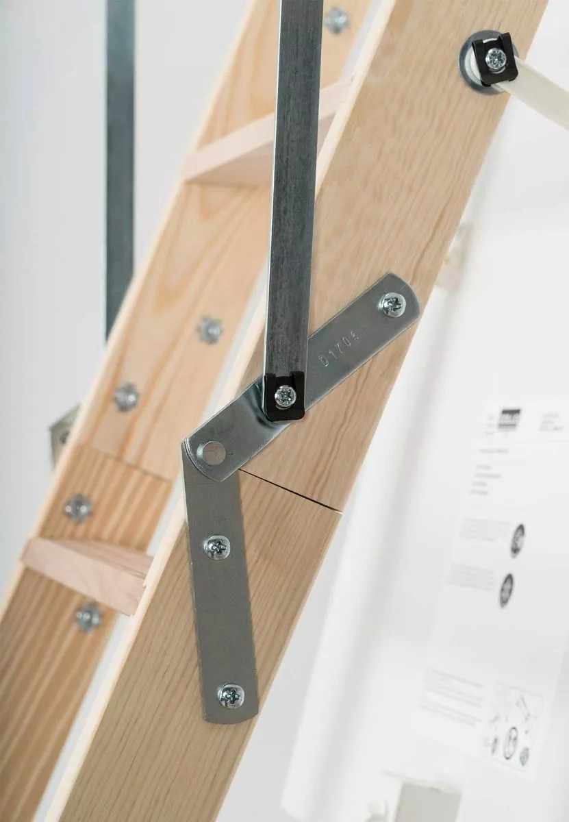 Model DOLLE clickFIX® 56 Silver posiada stopnie przeciwpoślizgowe podnoszące bezpieczeństwo oraz drewniany drążek ułatwiający otwieranie i zamykanie schodów.