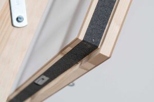 Schody DOLLE REI 45 charakteryzują się odpornością ogniową do 45 minut, zgodnie z normą EN 13501-2. Klapa schodów jest izolowana 50 mm warstwą wełny mineralnej Rockwool, która jest niepalna, nieprzepuszczająca wilgoci i wody. Klapa jest estetycznie wykończona, z ukrytymi zawiasami oraz wysokiej jakości zamkiem, wykonana z białych płyt HDF.